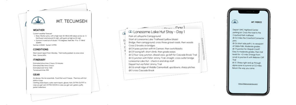 - Emergency contact – I can be the person who knows your itinerary and will call NH Fish and Game if you don’t check in at the appointed time (something every hiker should always have!)